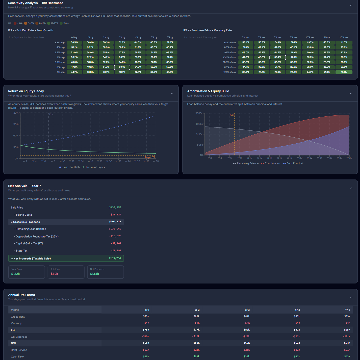 - Look at IRR at your target hold period: does it beat your alternative investment options?