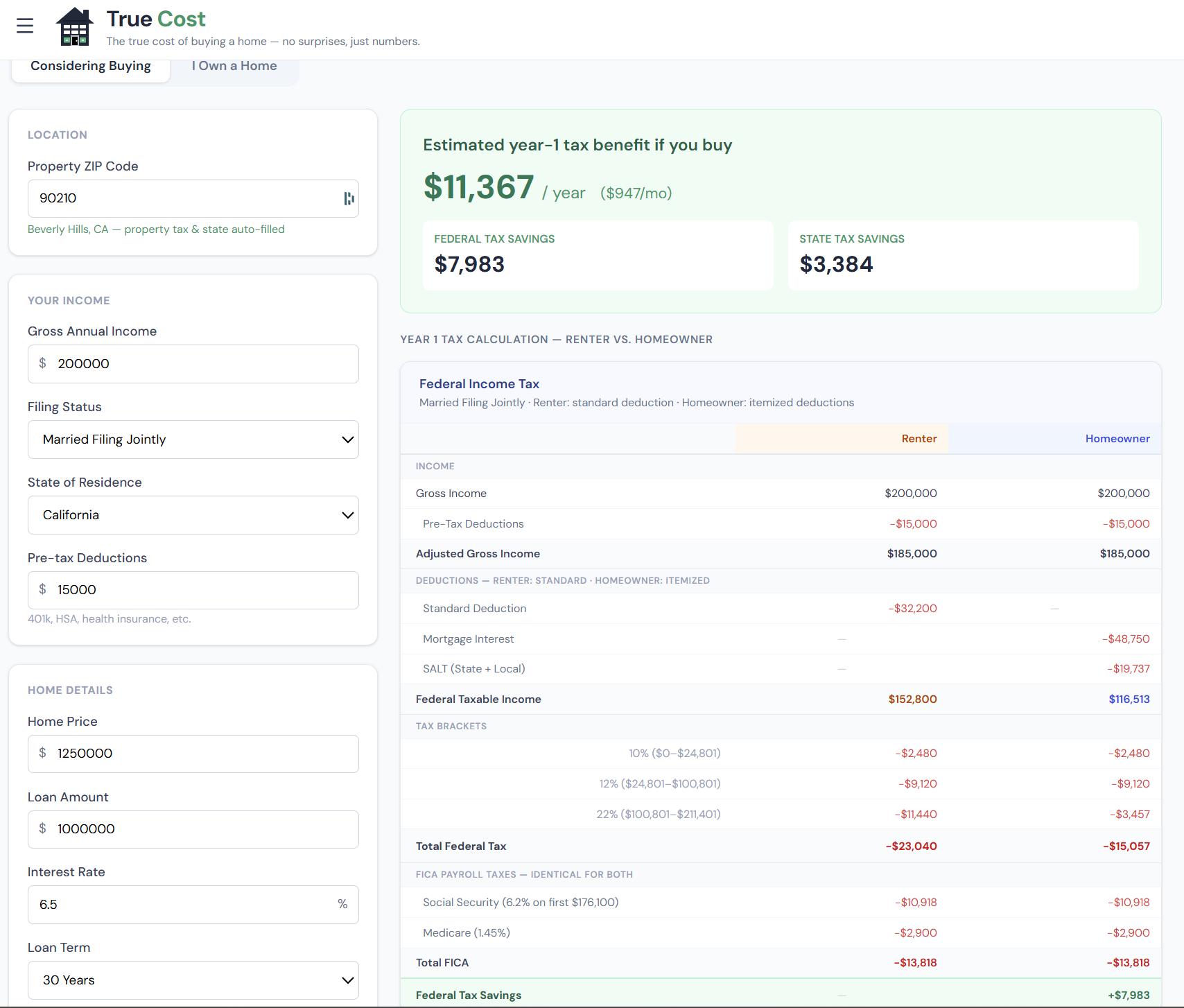 The Tax Benefit Calculator does this math precisely — and then repeats it for every year of your loan as interest payments shrink.